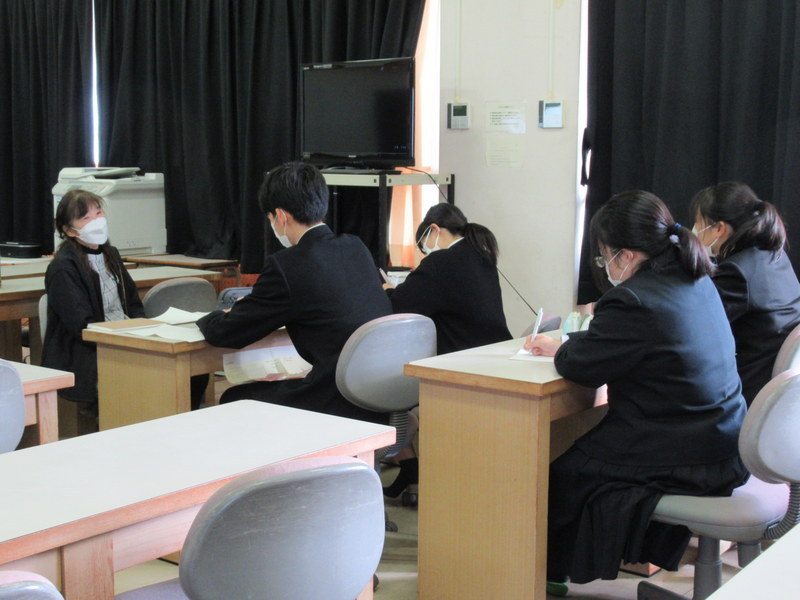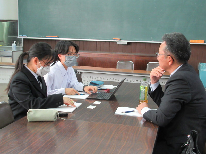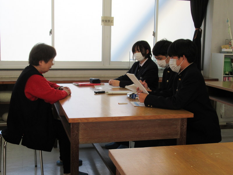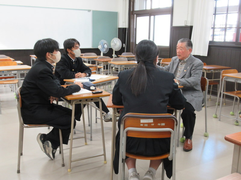 11月21日(金)の総合的な探究の時間に、1年生が「先達からの聞き書き(1回目)」を行いました。地元企業の方や町内会連合会の方、商店街の方、校友の方など多くの方に、学校にお越しいただいたり職場を訪問させていただいたりしてお話を伺いました。お一人おひとりの歩んでこられた人生をお聞きすることで、生徒たちはこれから自分たちが歩んでいく人生をより豊かにすることができます。先達の皆様、貴重なお時間を頂戴し、ありがとうございました。1月には2回目の聞き書きを行う予定となっています。引き続きよろしくお願いいたします。
