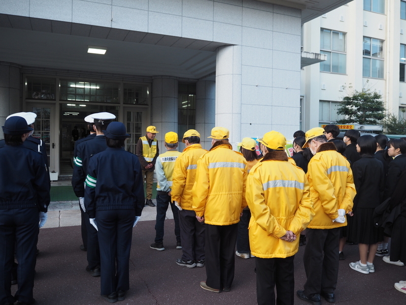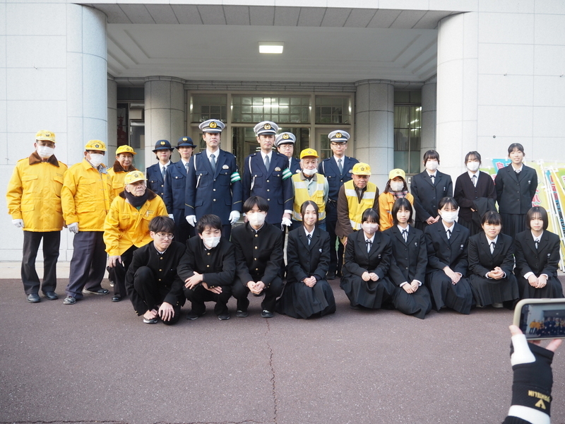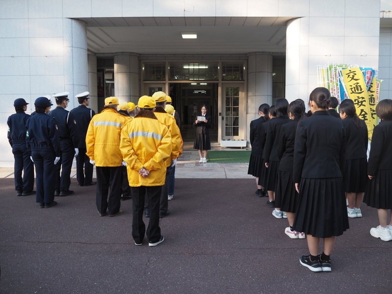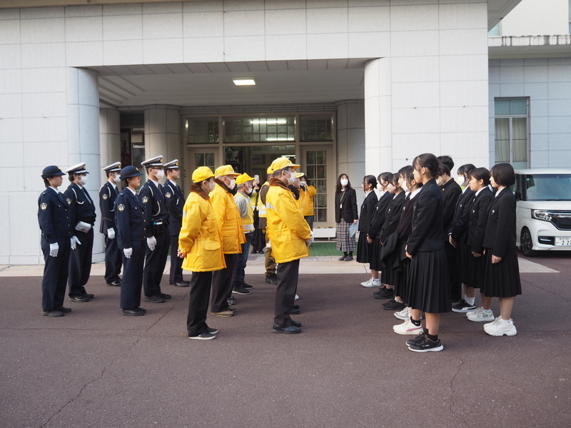 12月10日(水)の放課後、家庭クラブによる交通安全街頭キャンペーンが行われました。これは、年末の交通安全運動期間に合わせて毎年実施しているものです。今年度も1年生の家庭クラブ員が製作したアロマ芳香剤に交通安全標語を添えて配付し、交通安全の呼びかけを行いました。活動が安全に行われるよう、高知警察署及び交通安全協会の方もご協力くださいました。