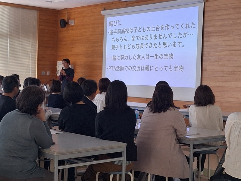 5月17日(土)にPTA総会を行いました。1時間目の授業参観から多くの保護者が来てくださいました。その後行われたPTA総会では、新しい役員が決まり、令和7年度の事業計画や予算が承認されました。総会の後には、本校の卒業生と卒業生の保護者から、高校時代を振り返っての本校での学習、生活についてのお話や、保護者がお子様とどのように関わってこられたかといったお話を伺うことができました。