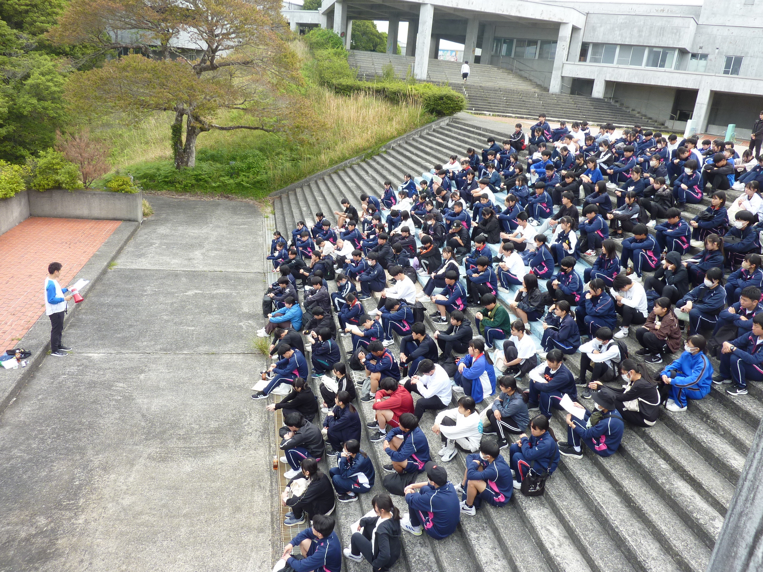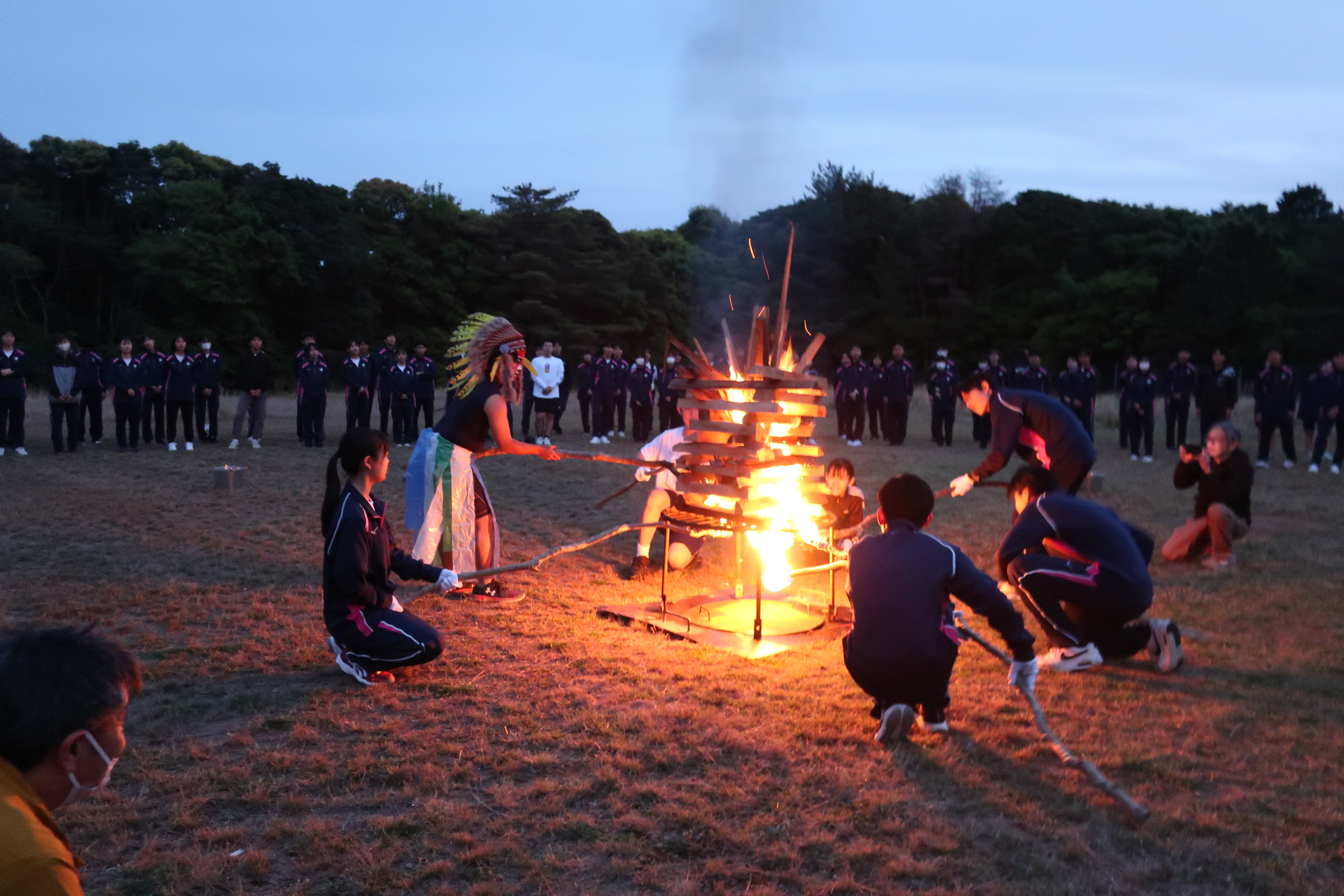 4月30日(水)〜5月1日(木)の1泊2日で、1年生が室戸宿泊研修を行いました。1日目のキャンプファイアでは、火の神が降臨してアグレッシブな儀式が執り行われ、その後のフォークダンスではアンコールが起きるほど盛り上がりました。2日目のオリエンテーリングでは、山のあちこちで歓声が聞こえ、どのクラスも優勝目指して頑張っていました。2日間とも天候に恵まれ、1年生は自然の中での研修を満喫するとともに、クラスの友達との親睦をさらに深めることができたようです。
